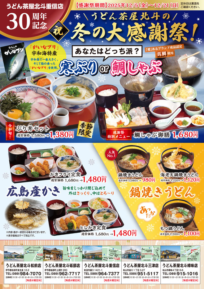 『うどん茶屋北斗砥部店30周年記念 冬の大感謝祭』を実施致します!