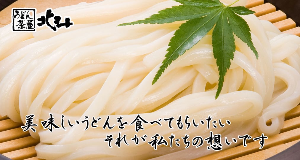 うどん茶屋北斗砥部店に隣接する製麺工場で作られた自社製の麺とこだわりのつゆでお召し上がりください。